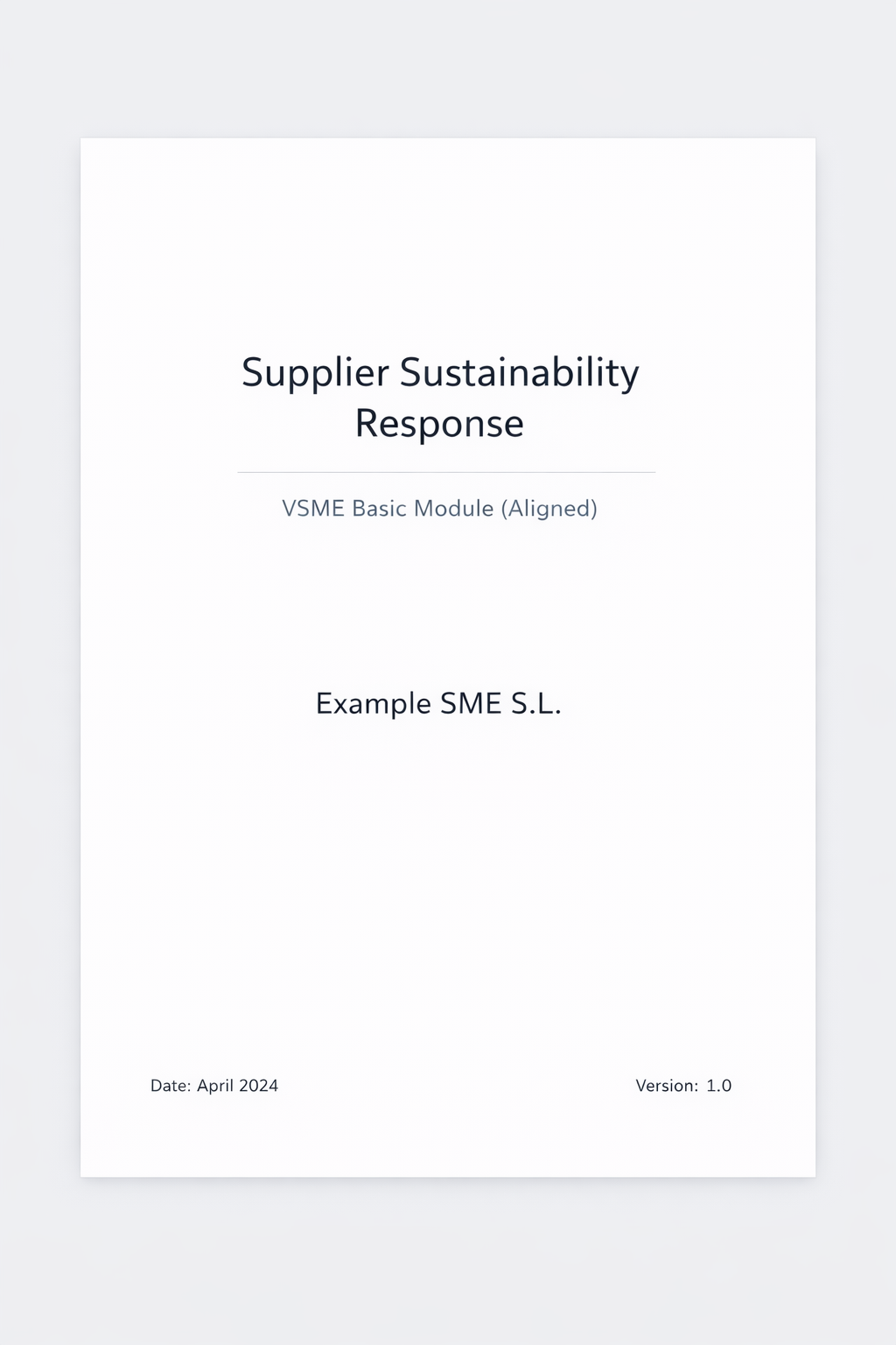 A supplier-ready sustainability response aligned with the VSME Basic Module, designed to be reviewed, forwarded, and archived without rework.